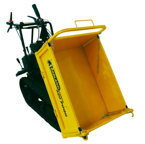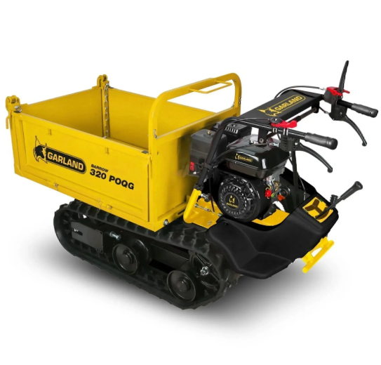 Carretilla motorizada de oruga con motor 4 Tiempos, 212 cc y 4,7kW de potencia, reducidas dimensiones y gran capacidad de carga y de maniobra la hacen la perfecta sustituta de la carretilla aumentando la productividad.